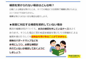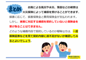 万が一、自宅が台風による被害を受けてしまった場合、どこまで補償を受けることができるのか。